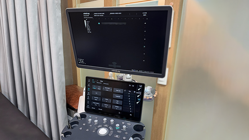 고주파 신호를 실시간으로 영상화하여 인체의 이상 유무를 진단하는 장비입니다. 방사선을 사용하지 않으며 침습 등의 통증 없이 신속하고 간편하게 검사할 수 있습니다.