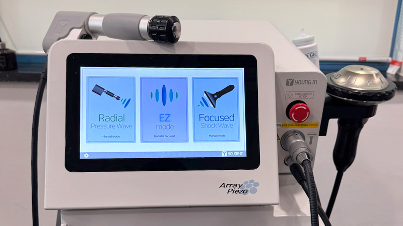체외충격파는 기기에서 발생한 충격파가 힘줄의 세포막에 물리적 변화를 유발, 힘줄의 석회질을 제거하고 혈관재생을 촉진하여 병변 부위의 혈액 공급을 증가시켜 줍니다. 이로 인하여 염증을 감소시키고 주변 조직과 뼈를 활성화 시켜 통증의 감소와 기능의 개선을 얻을 수 있는 치료법입니다.